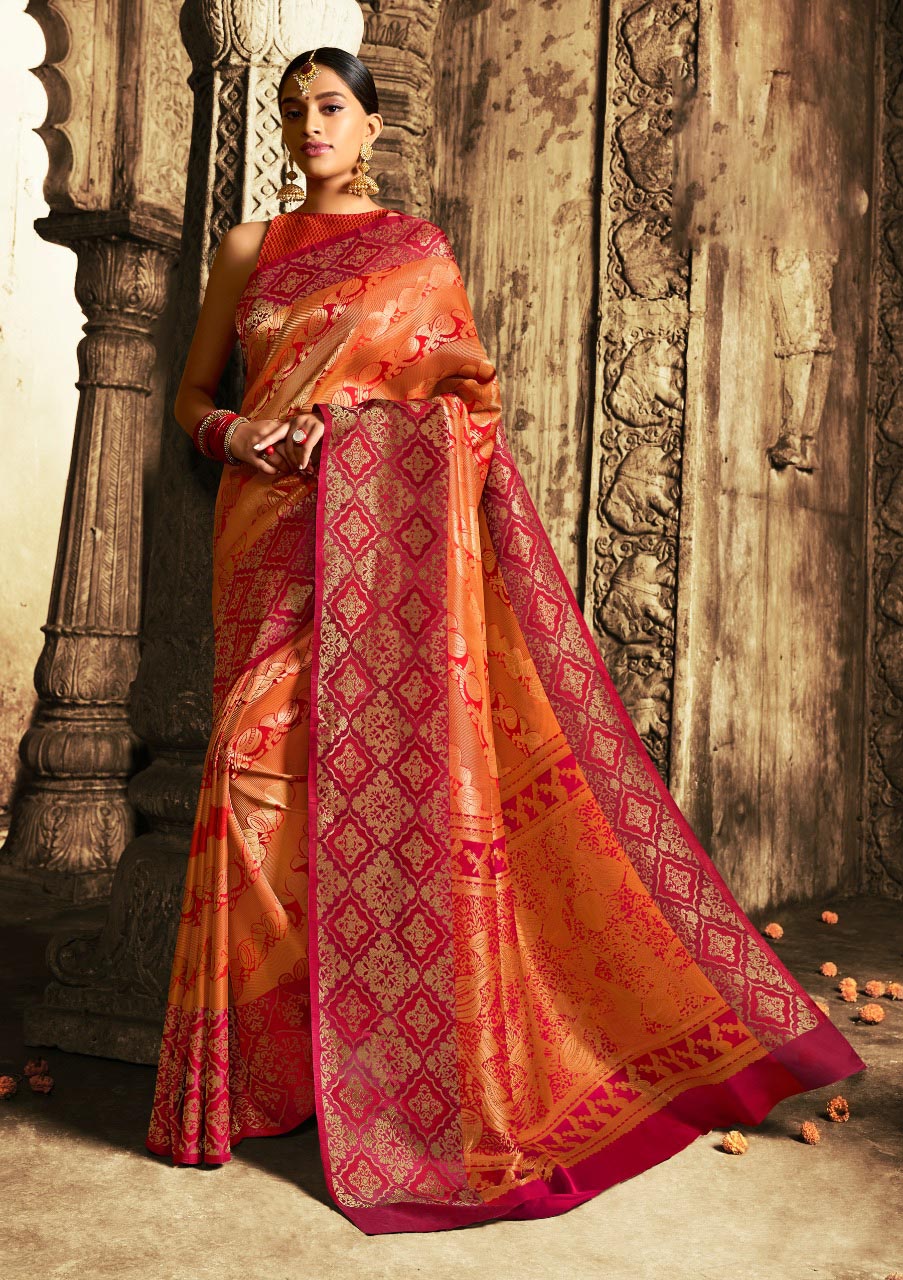 This beautiful banarasi silk Indian saree / sari enhanced with elegant weaving work and comes with banarasi silk blouse in unstitched form.
