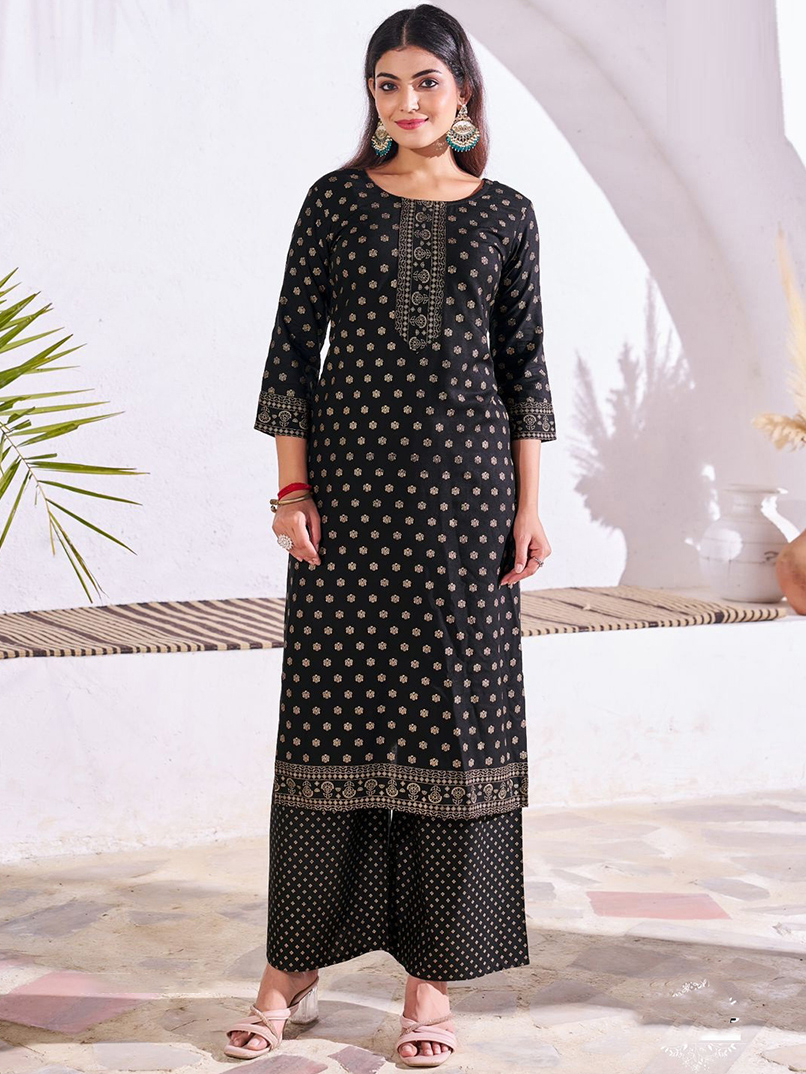 This beautiful palazzo kurti top comes in rayon and is enhanced with elegant work. The designer palazzo bottom comes in premium rayon.