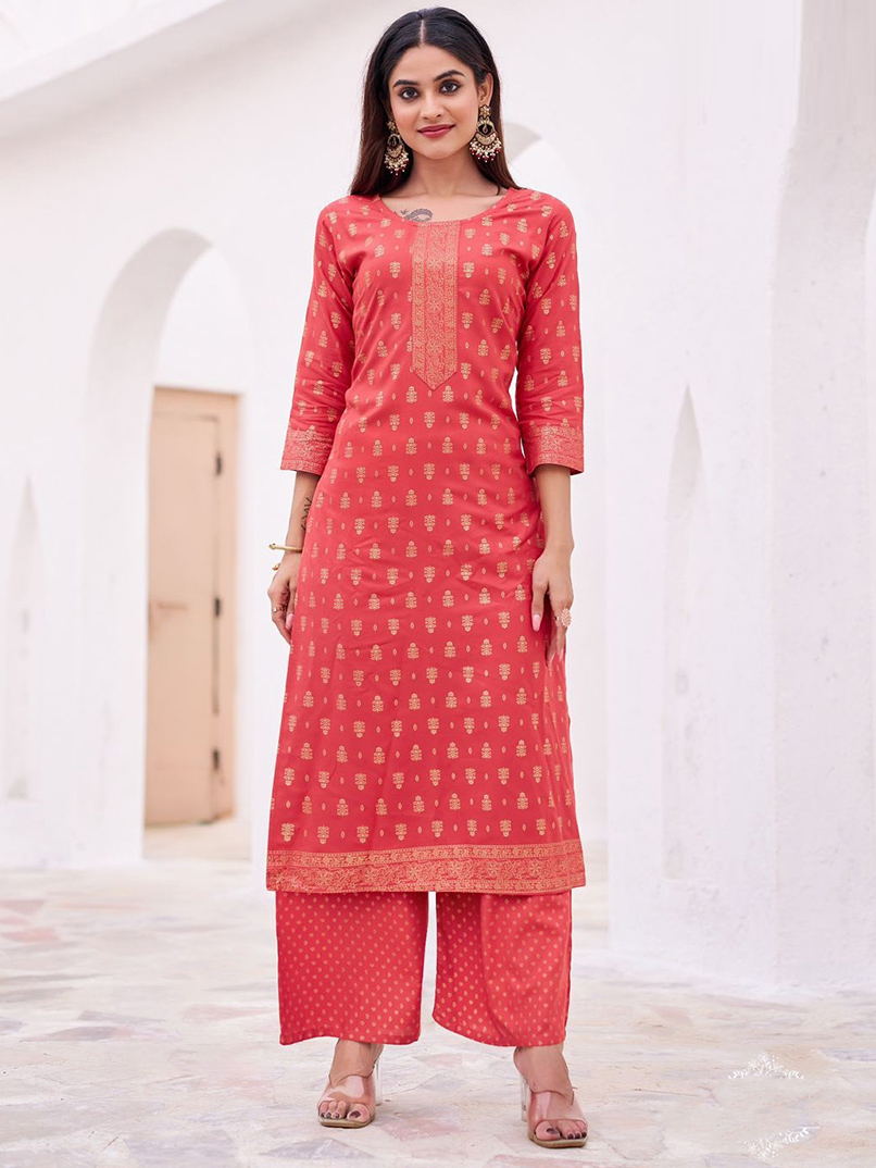 This beautiful palazzo kurti top comes in rayon and is enhanced with elegant work. The designer palazzo bottom comes in premium rayon.
