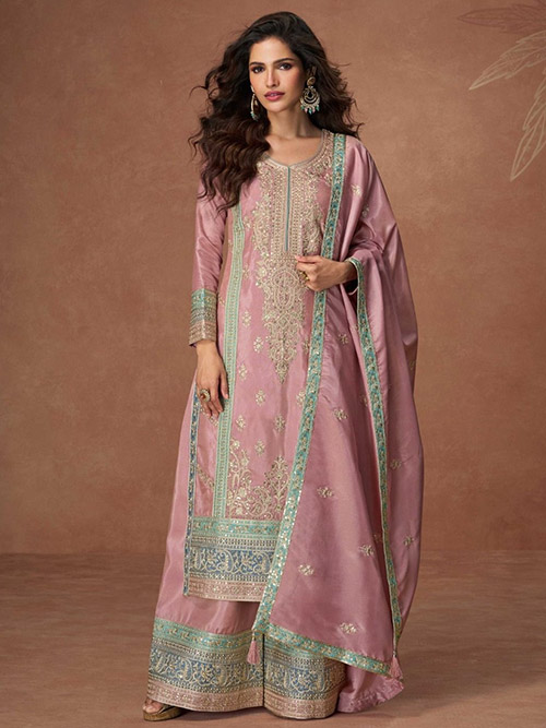 This beautiful salwar kameez palazzo suit top comes in organza silk and is enhanced with elegant work. The designer palazzo bottom (salwar) comes in premium organza silk. Dupatta comes in organza silk.