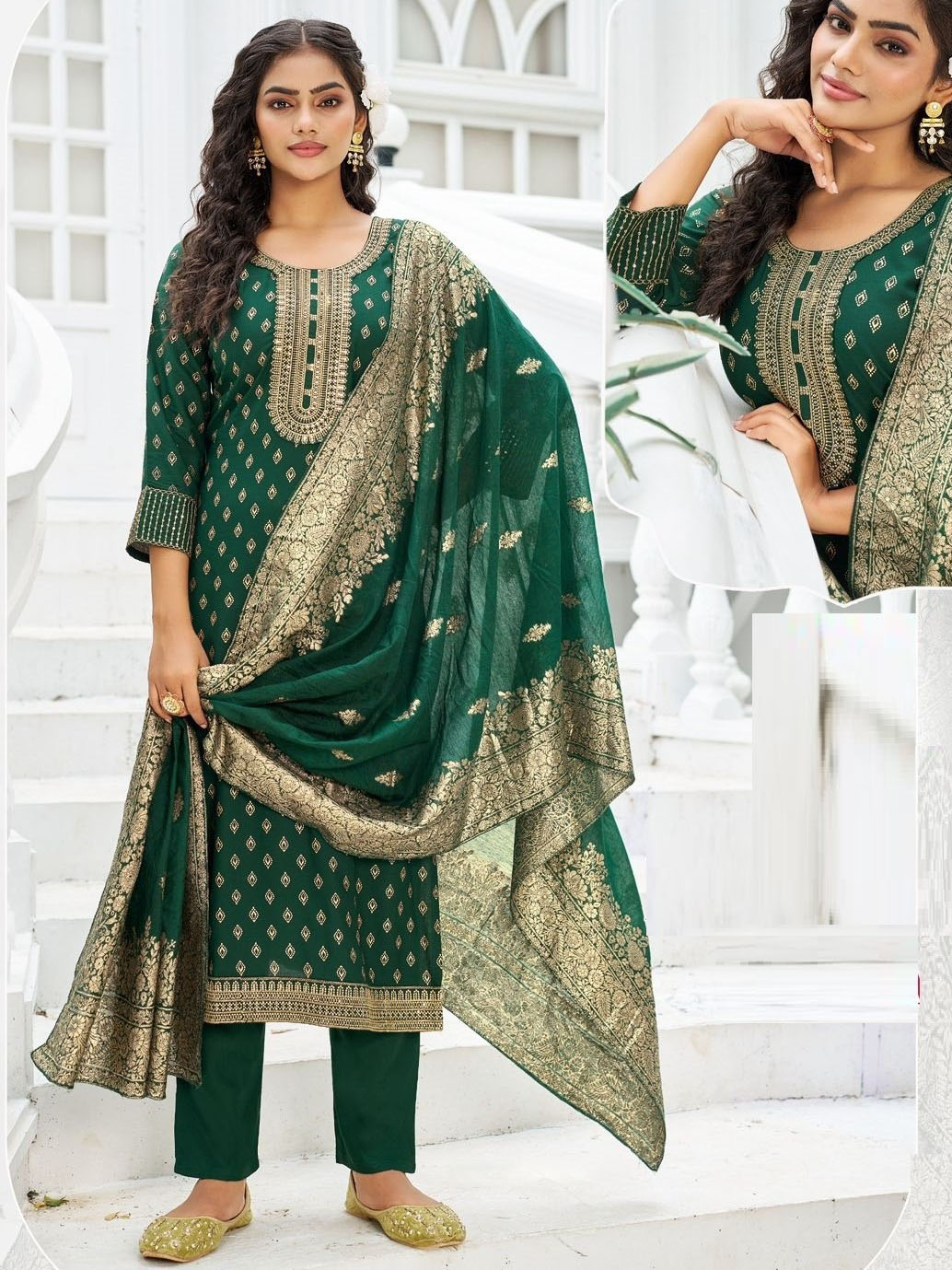 This beautiful salwar kameez pant suit top comes in rayon and is enhanced with elegant work. The designer pant bottom (salwar) comes in premium rayon. Dupatta comes in jacquard.