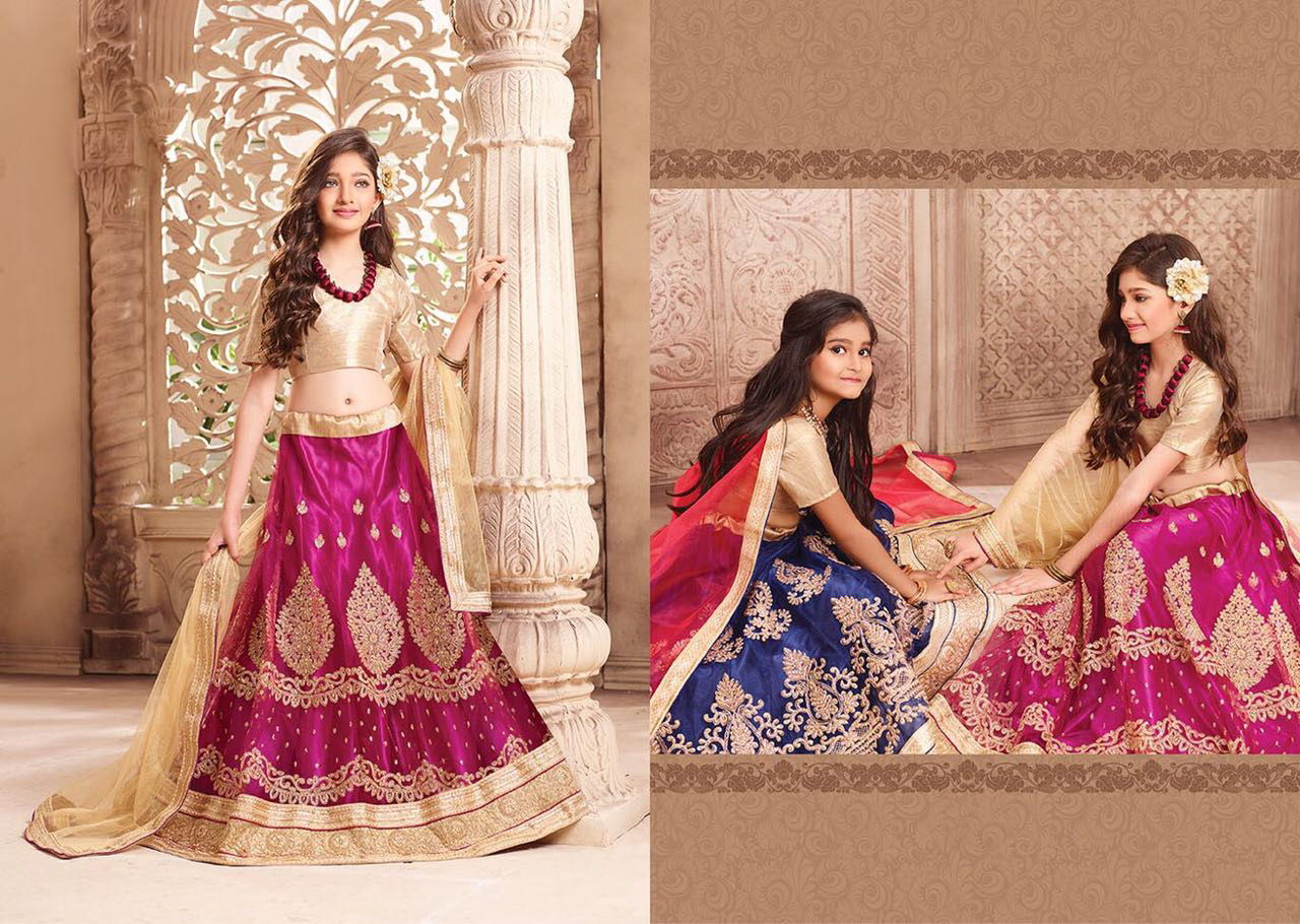 This extremely beautiful readymade kids lehenga in net enhanced with elegant embroidery work. Blouse comes in silk. Dupatta comes in heavy net.