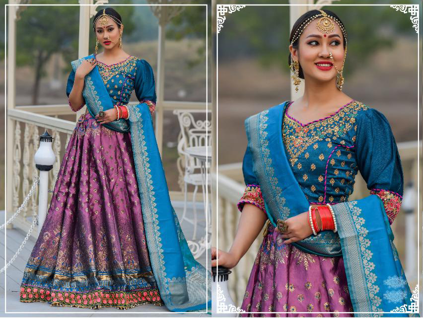 This fabulous designer bright beautifully crafted premium banarasi silk lehenga is enhanced with jacquard work. Blouse comes in phantom silk with embroidery. Dupatta comes in banarasi jacquard.
