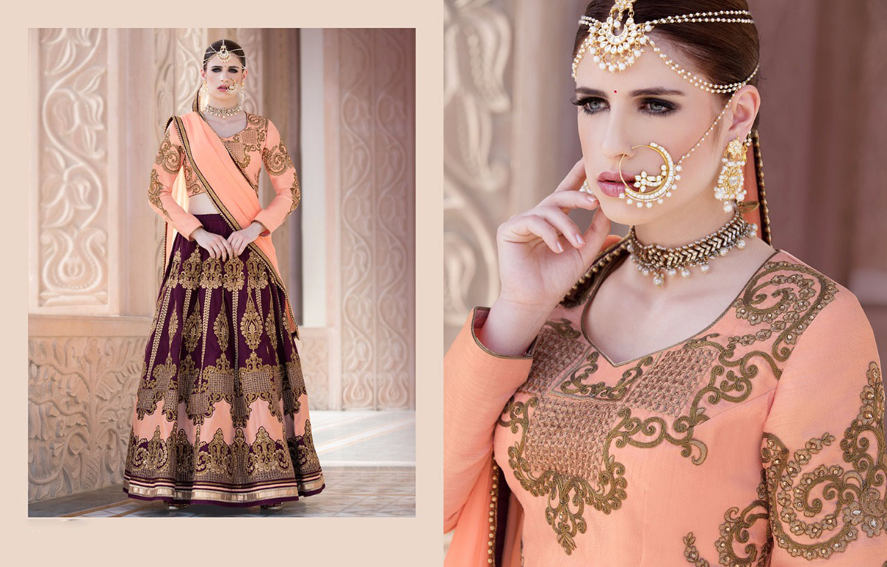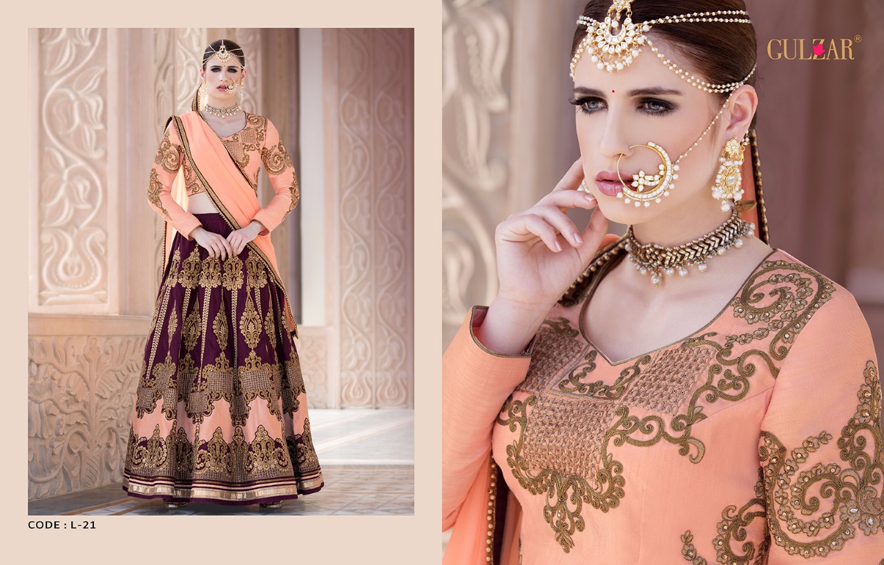This fabulous designer bright beautifully crafted pure banglori silk lehenga is enhanced with heavy golden zari work embroidery, comes with satoon inner. Blouse comes with heavy embroidery. Dupatta comes in georgette.