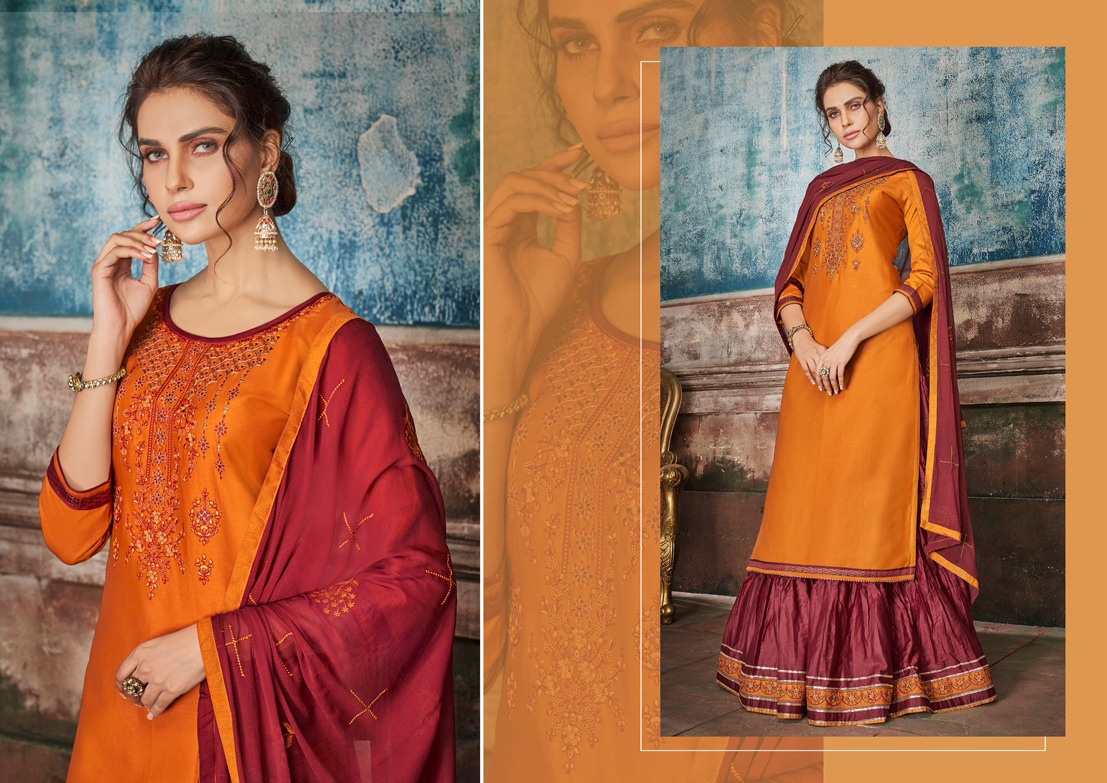 This beautiful readymade premium silk top enhanced with elegant work. Bottom comes in premium cambric cotton. This dress comes with nazmin dupatta.
