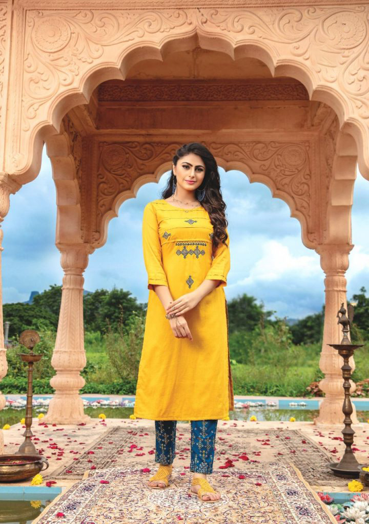 This beautiful readymade salwar kameez comes with a premium rayon & cotton top enhanced with elegant work. Bottom comes in cotton jacquard.