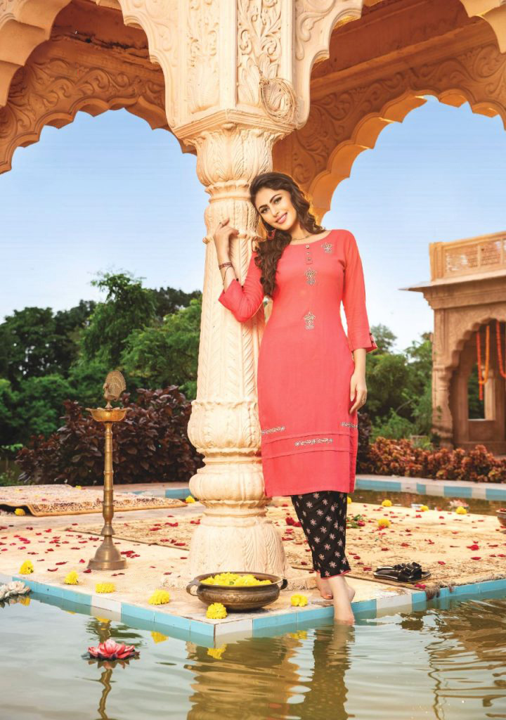 This beautiful readymade salwar kameez comes with a premium rayon & cotton top enhanced with elegant work. Bottom comes in cotton jacquard.