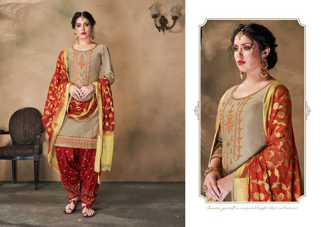 This beautiful elegant readymade salwar kameez top comes in pure jam silk with khatli embroidery work and bottom comes in premium rayon with foil print. Dupatta comes in pure viscose with jari work. Bust: 42" Waist: 39"-41"