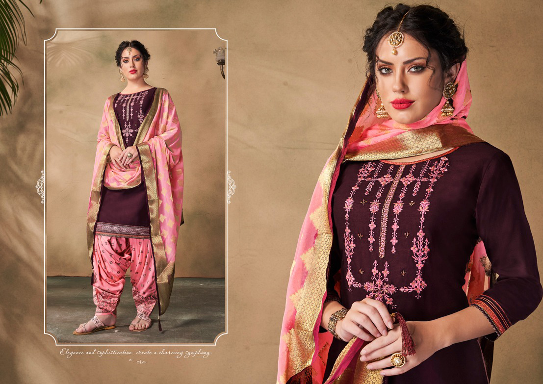 This beautiful elegant readymade salwar kameez top comes in pure jam silk with khatli embroidery work and bottom comes in premium rayon with foil print. Dupatta comes in pure viscose with jari work. Bust: 42" Waist: 39"-41"