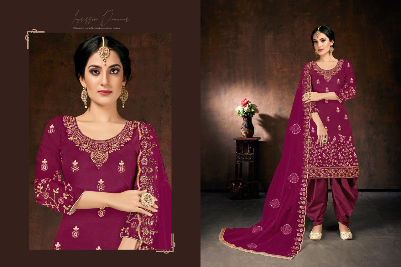 This beautiful elegant readymade patiala salwar kameez top comes in pure jam silk with embroidery and stone work and bottom comes in premium jam silk. Dupatta comes in premium net with embroidery and stone work. Bust: 46" Waist: 44"-45"