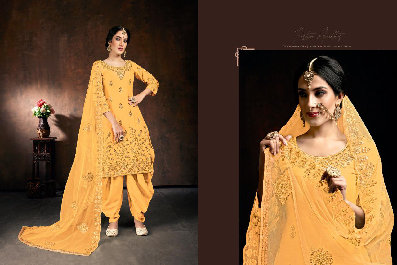 This beautiful elegant readymade patiala salwar kameez top comes in pure jam silk with embroidery and stone work and bottom comes in premium jam silk. Dupatta comes in premium net with embroidery and stone work. Bust: 46" Waist: 44"-45"