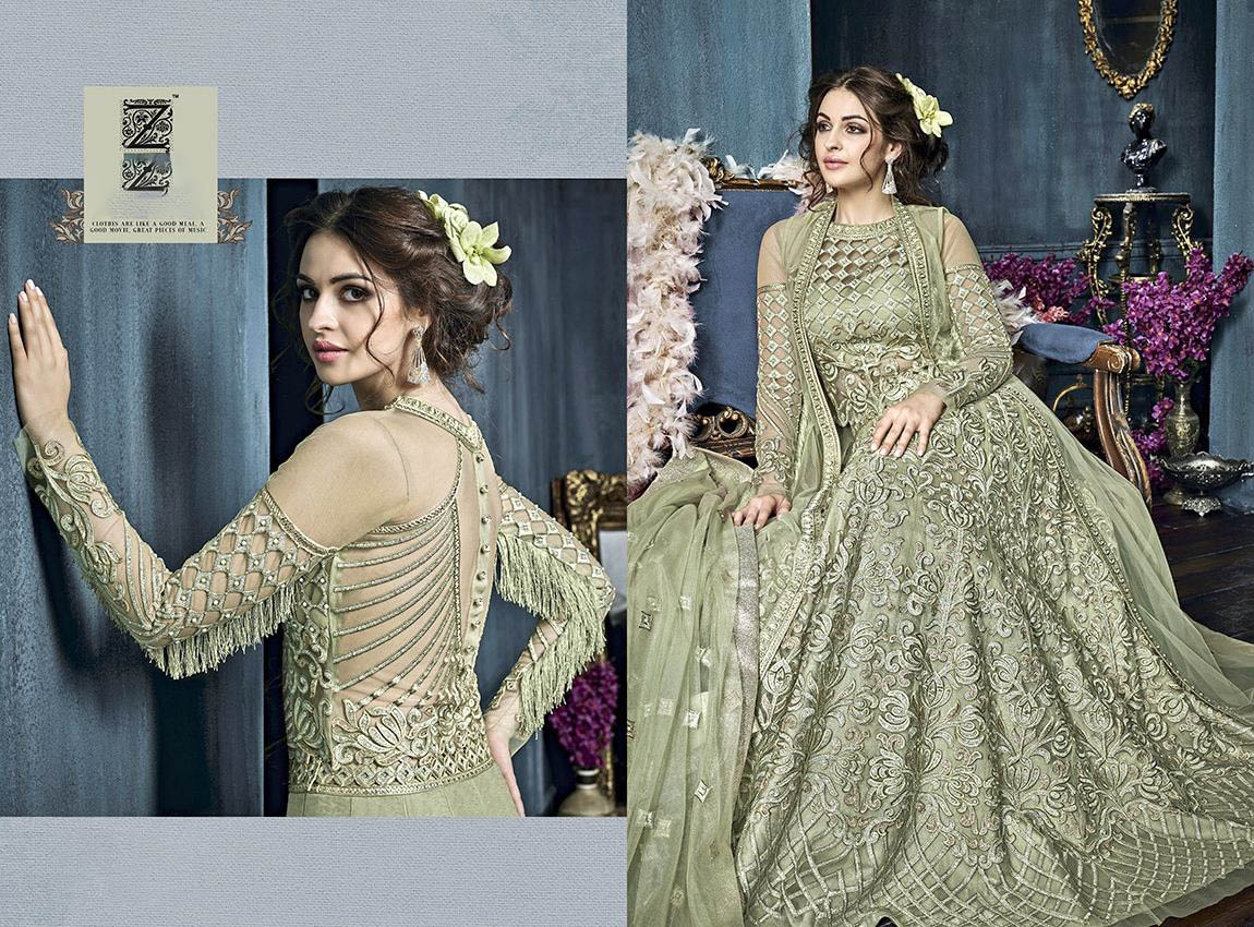 This celebrity extremely beautiful indo western gown enhanced with resham, zari, stone and sequins work. Top comes in premium heavy net. Inner and bottom comes in premium satin. Dupatta comes in premium quality chiffon.
