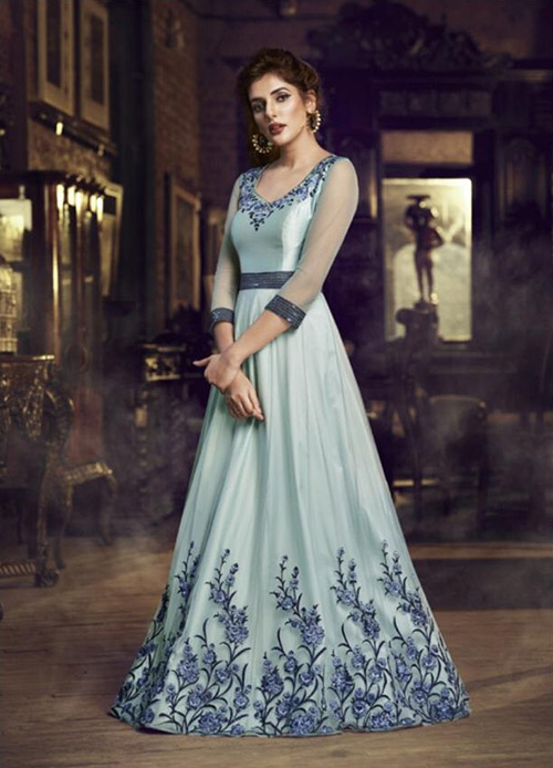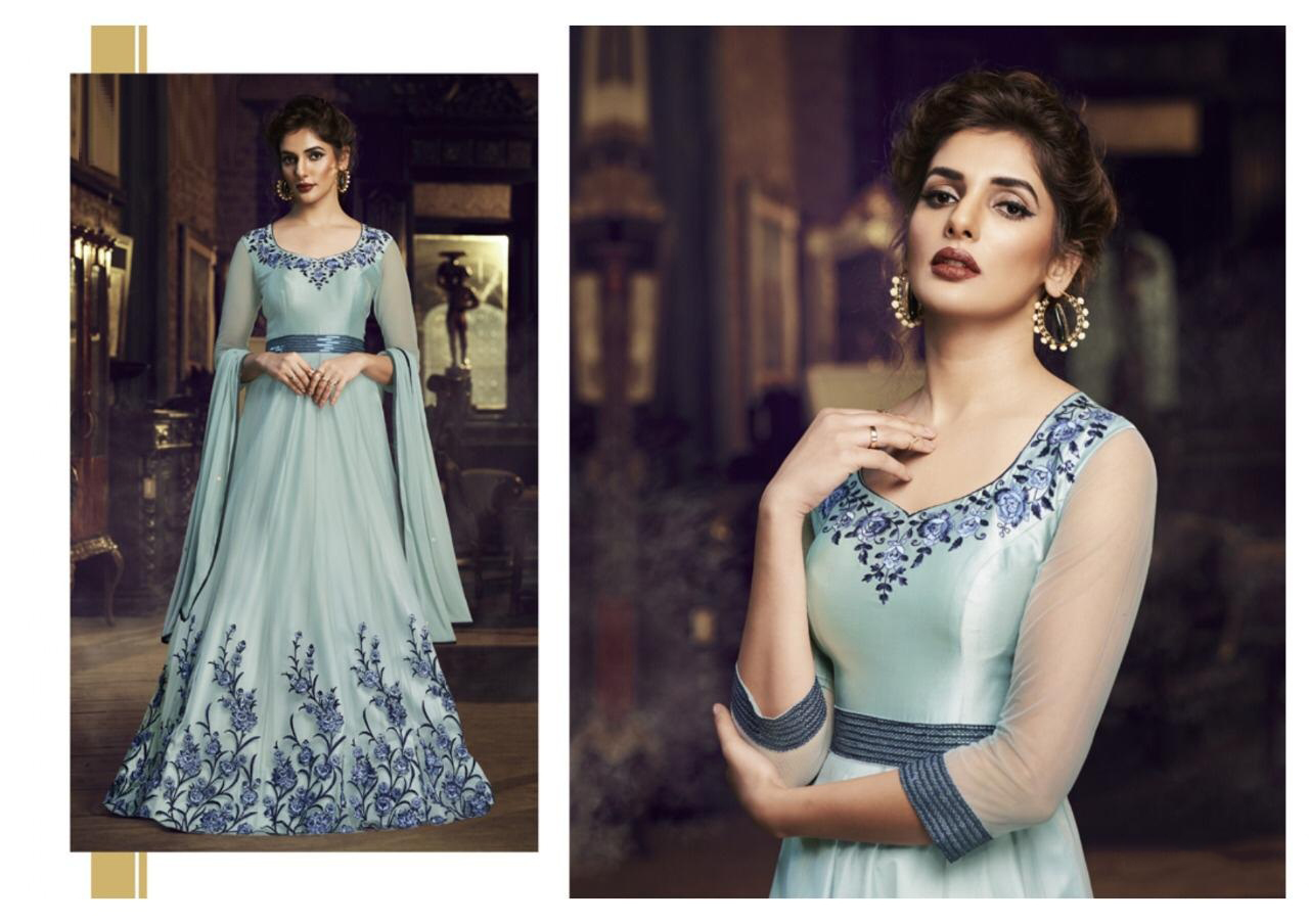 This ready to wear celebrity extremely beautiful indo western gown enhanced with elegant work. Top comes in premium soft net and satin with elegant work. Dupatta comes in premium chiffon.