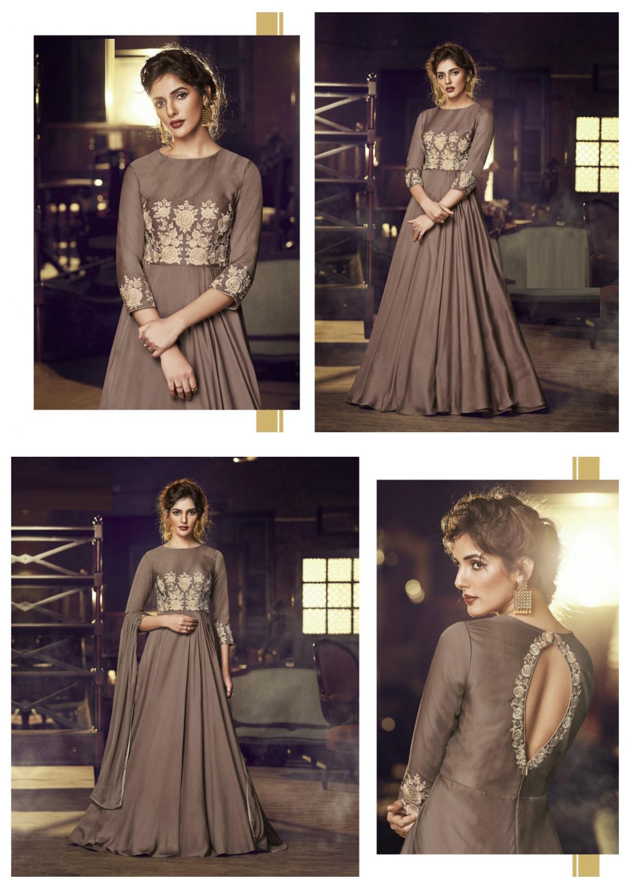 This ready to wear celebrity extremely beautiful indo western gown enhanced with elegant work. Top comes in premium soft net and satin with elegant work. Dupatta comes in premium chiffon.
