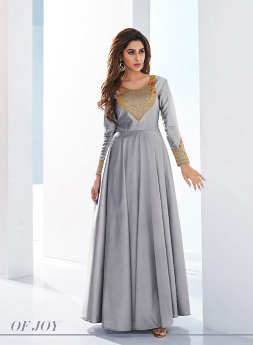This premium Indo western gown comes in premium silk enhanced with elegance work.