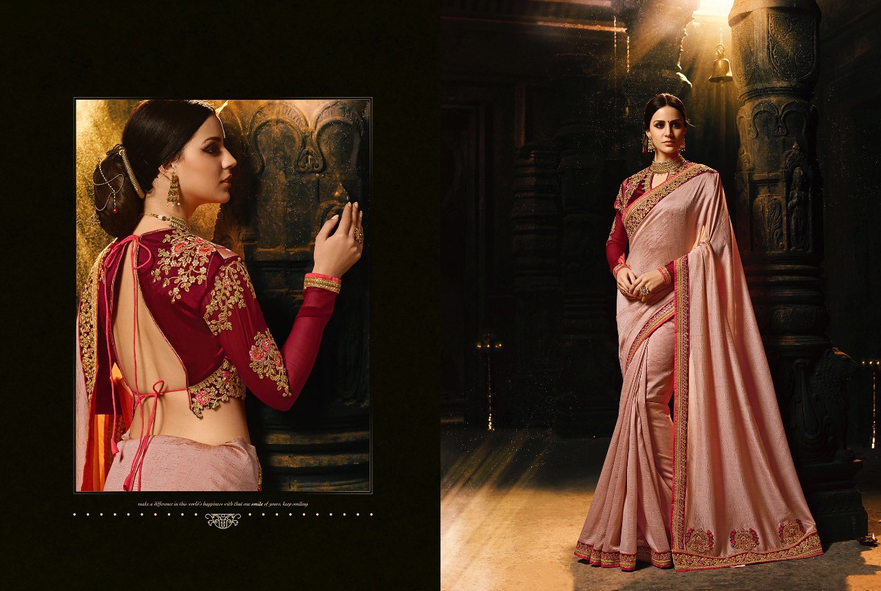 This beautiful satin/silk Indian saree / sari enhanced with elegant work. Blouse comes with elegant work in premium silk.