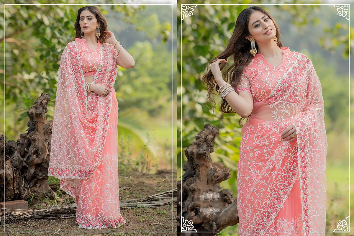 This beautiful net Indian saree / sari enhanced with elegant work. Blouse comes with elegant work on net.