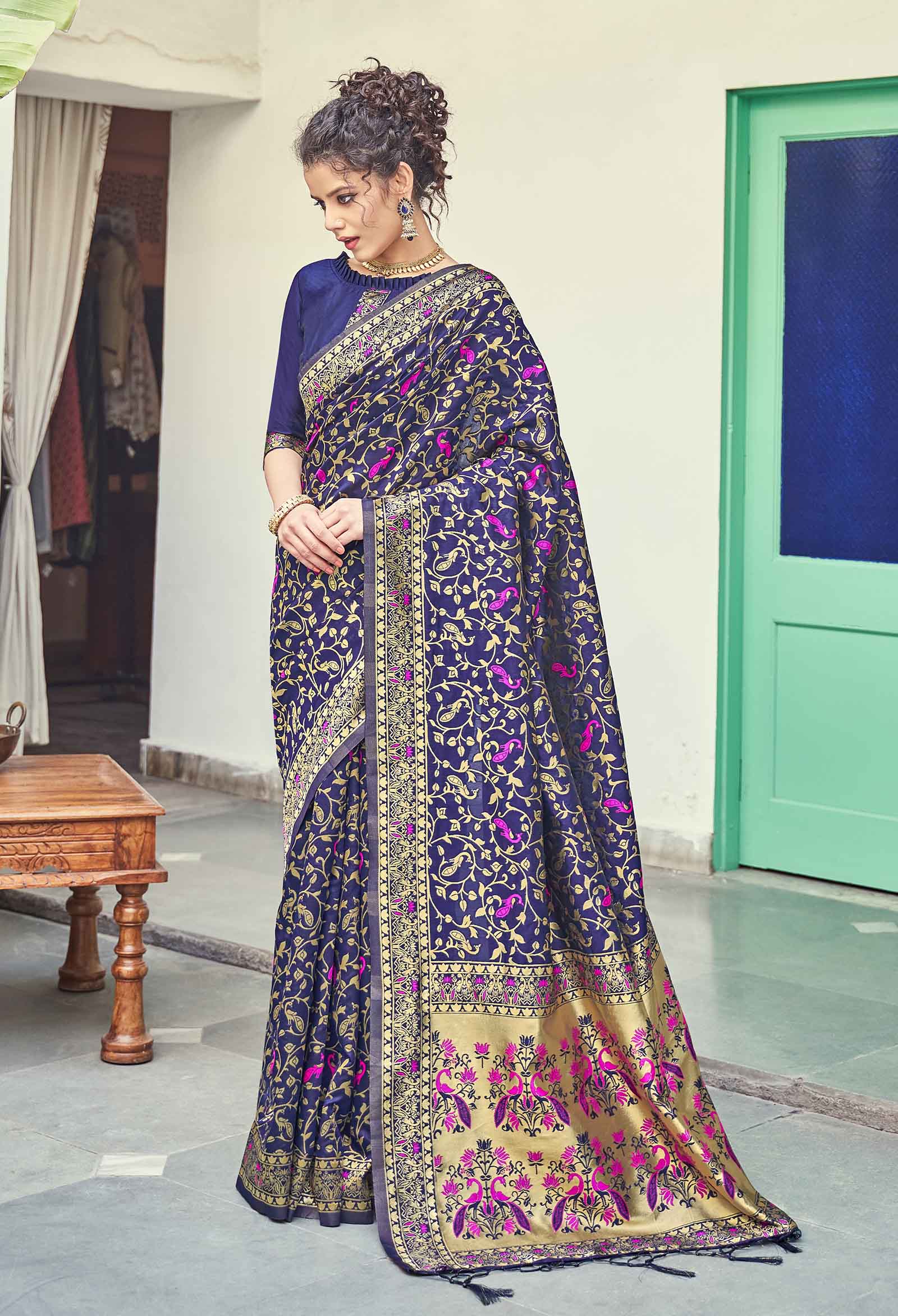 This beautiful premium banarasi silk Indian saree / sari enhanced with elegant work. Blouse comes with elegant work on premium banarasi silk.