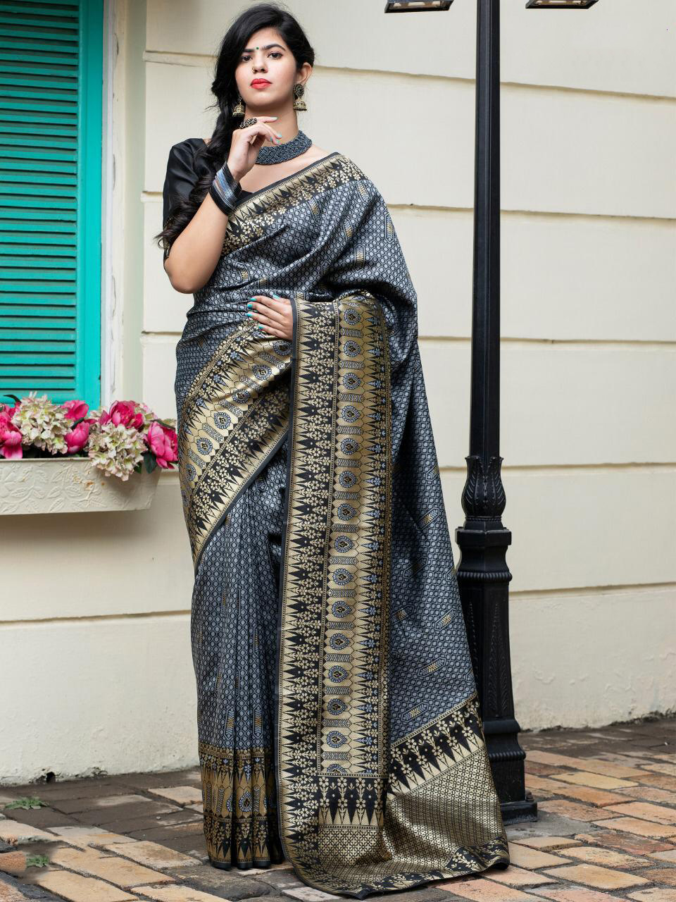 This beautiful premium baranasi silk Indian saree / sari enhanced with elegant work. Blouse comes in baranasi silk.
