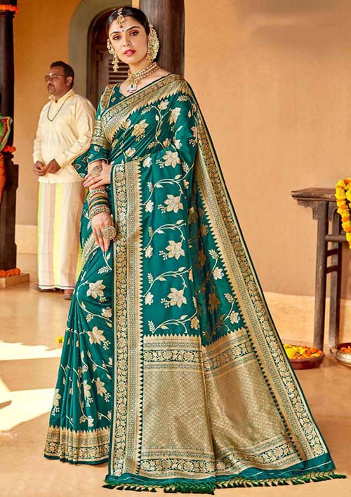 This beautiful premium baranasi silk Indian saree / sari comes with elegant weaving work. Blouse comes in premium silk.