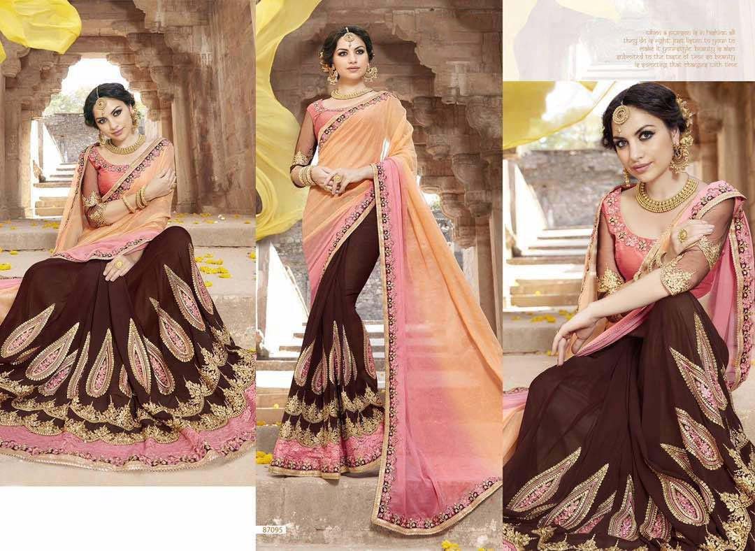 Extremely beautiful georgette saree enhanced with heavy embroidery and stone work. Embroidered blouse in unstitched form. Perfect saree for your party.