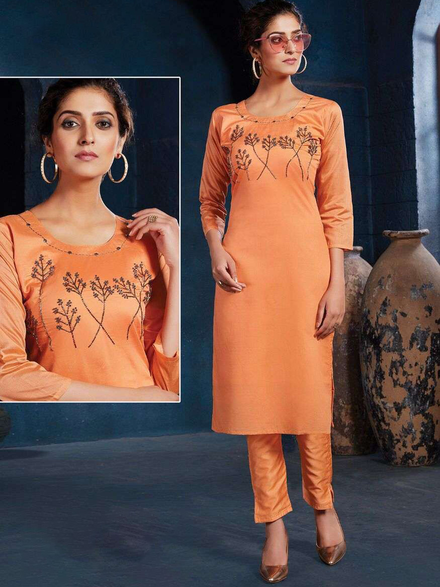 This beautiful pant kurti top comes in silk and is enhanced with elegant work. Pant bottom comes in premium silk.