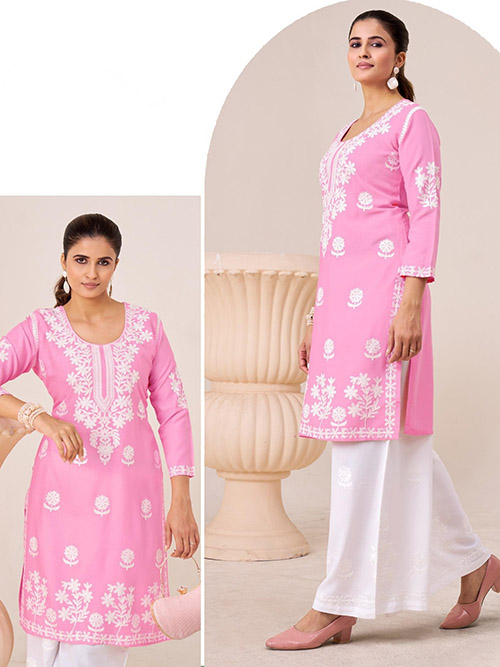 This beautiful palazzo kurti top comes in rayon and is enhanced with elegant work. The designer palazzo bottom comes in premium rayon.