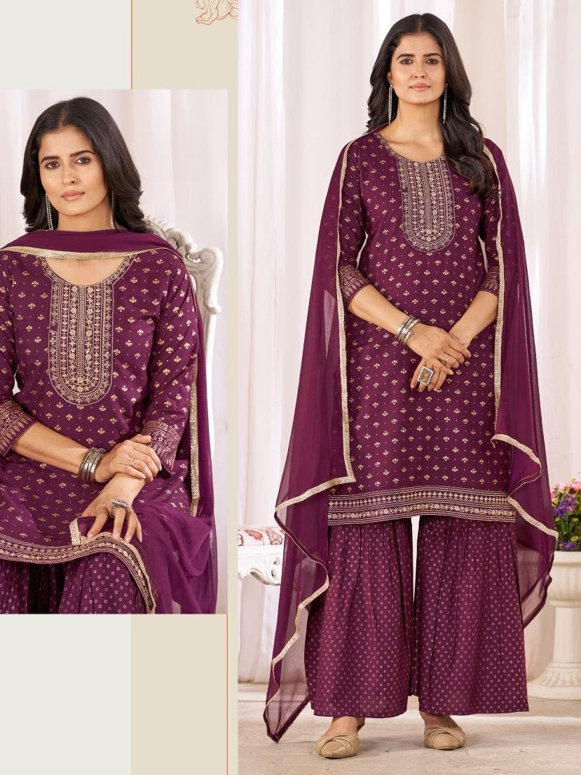 This beautiful garara kurti top comes in rayon and is enhanced with elegant work. The designer garara bottom comes in premium rayon. Dupatta comes in nazmin.