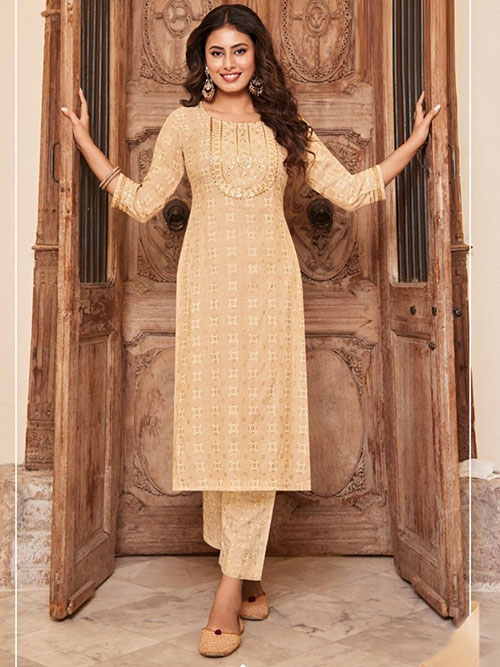 This beautiful pant kurti top comes in rayon and is enhanced with elegant work. Pant bottom comes in premium rayon.
