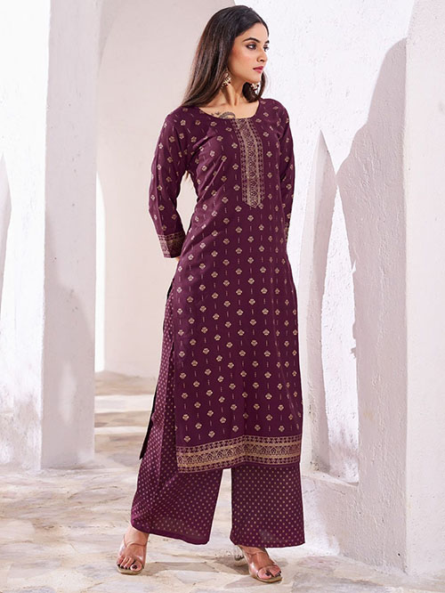 This beautiful palazzo kurti top comes in rayon and is enhanced with elegant work. The designer palazzo bottom comes in premium rayon.