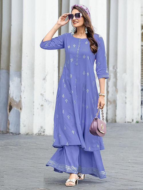This beautiful sharara kurti top comes in rayon and is enhanced with elegant work. The designer sharara bottom comes in premium rayon.