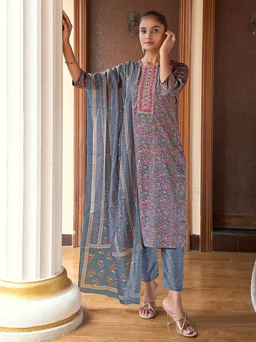 This beautiful pant kurti top comes in cotton and is enhanced with elegant work. The designer pant bottom comes in premium cotton. Dupatta comes in cotton.