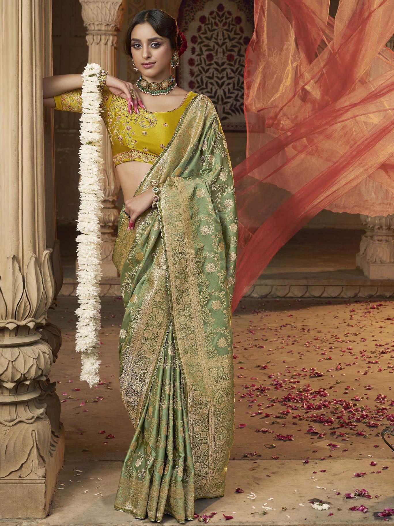 This beautiful premium satin Indian saree / sari comes with elegant work. The saree blouse comes in premium silk.