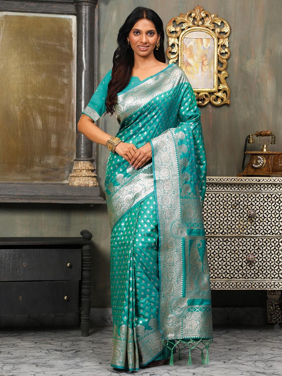 This beautiful premium banarasi silk Indian saree / sari comes with elegant work. The saree blouse comes in premium banarasi silk.