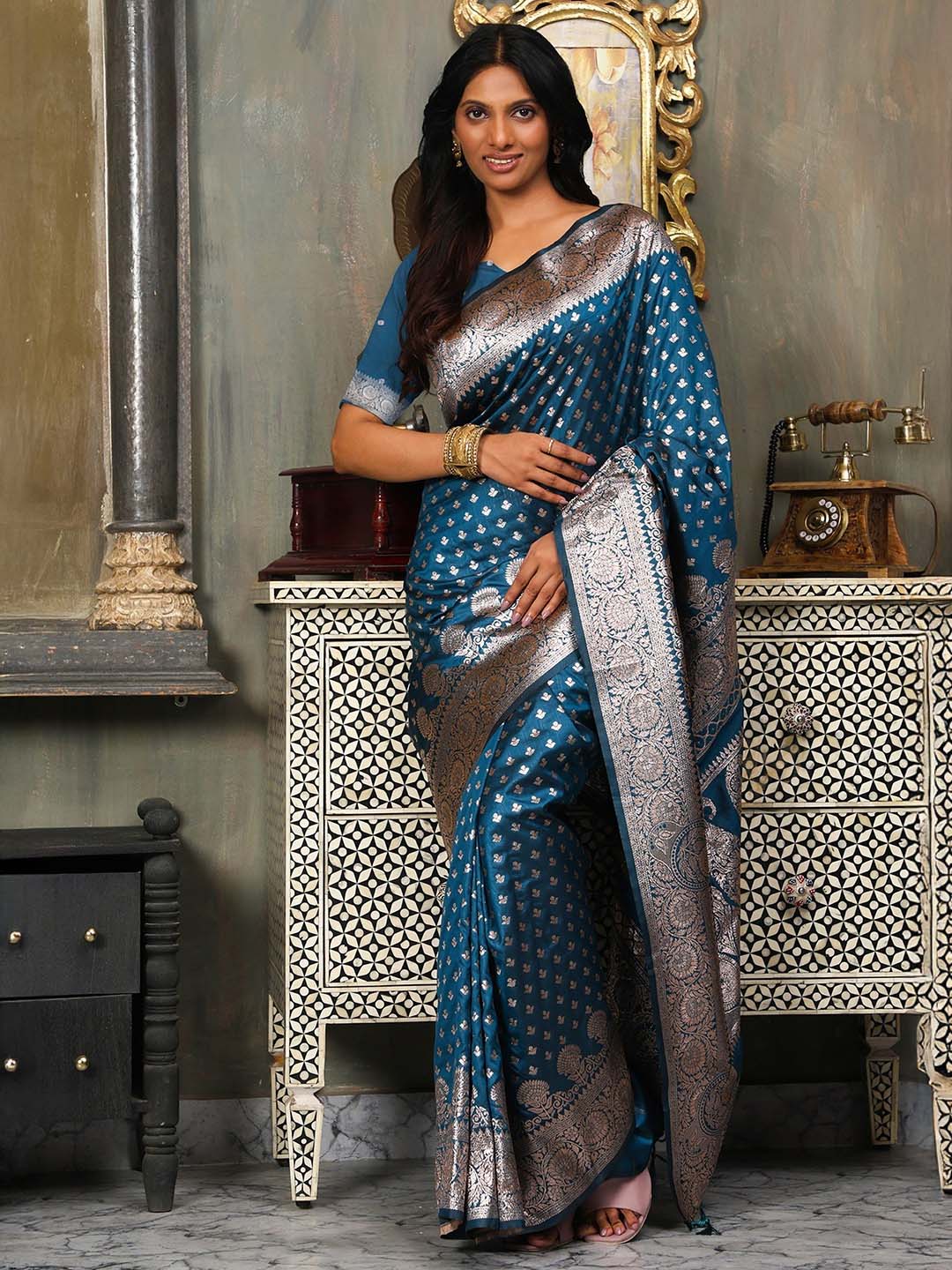This beautiful premium banarasi silk Indian saree / sari comes with elegant work. The saree blouse comes in premium banarasi silk.
