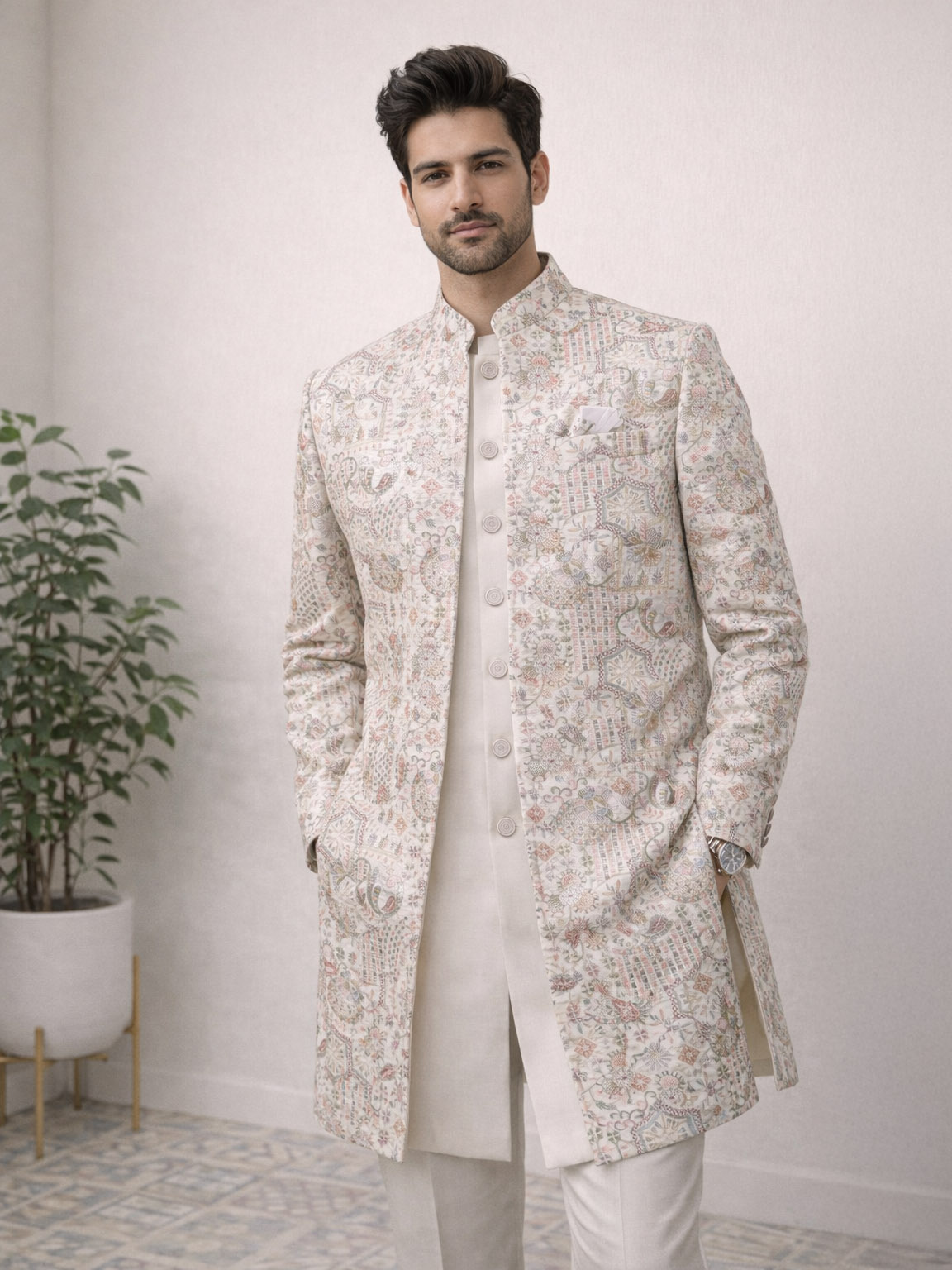 For men, explore our premium selection of Designer Kurtas, Kurta Pajama sets, Sherwanis, Indo-Western suits, and Pathani suits. Our Kurta Pajama Jacket sets, featuring classic Nehru Jackets and Modi Jackets, are ideal for weddings, receptions, and festive events. Our embroidered, silk, and cotton ethnic wear for men brings together traditional elegance and contemporary style.