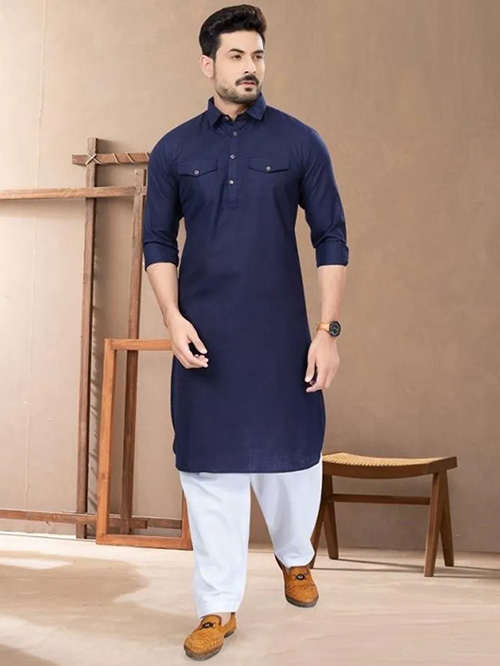 This ready to wear ethnic kurta comes in a premium cotton. Top kurta fabric is cotton. The bottom salwar comes in a premium cotton.