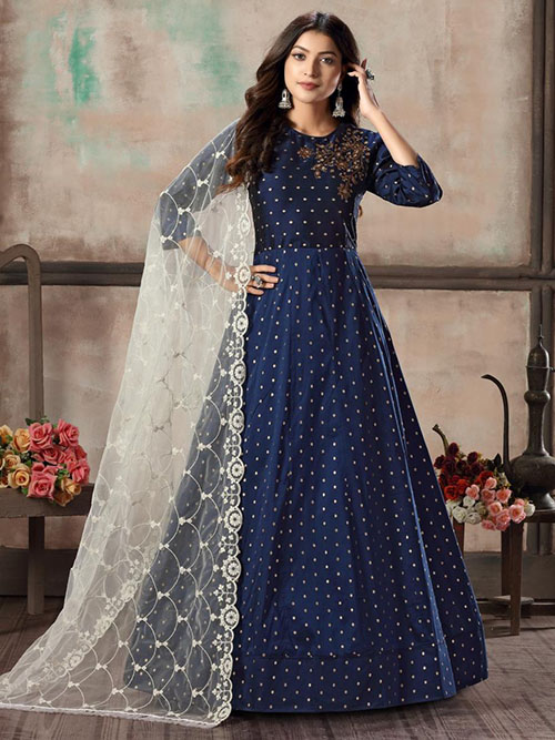 This beautiful readymade Indo western gown comes in premium silk with work. Bottom and inner comes in santoon. Dupatta comes in premium net with work.
