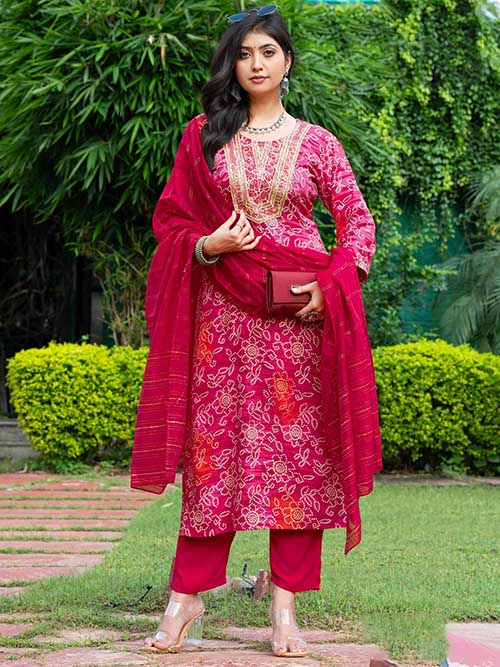 This beautiful pant suit top comes in rayon and is enhanced with elegant work. The designer pant bottom comes in premium rayon. Dupatta comes in jacquard.