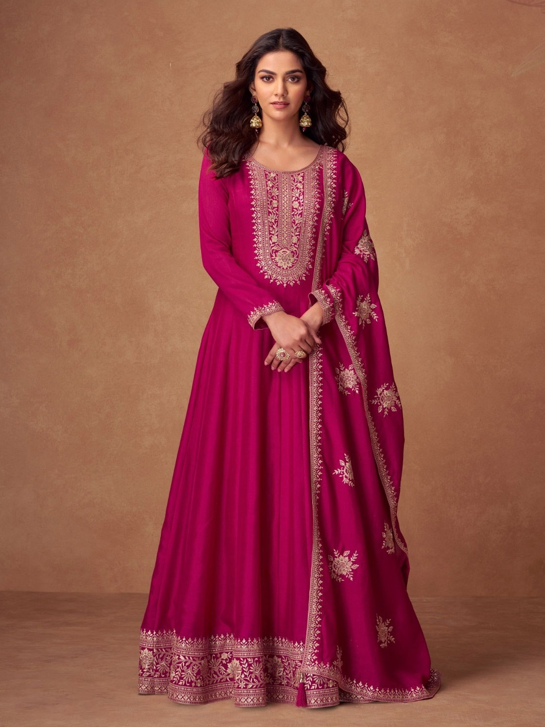 This celebrity indo western gown comes in silk enhanced with elegant work. Dupatta comes in silk.