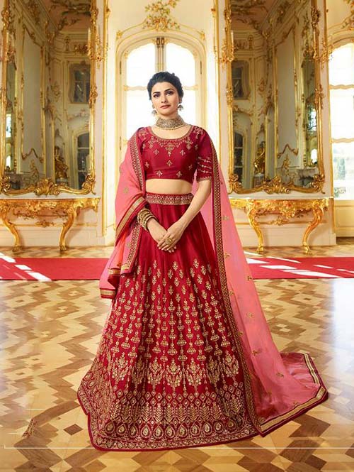 This fabulous designer bright beautifully crafted premium sparkle silk lehenga is enhanced with golden zari and border work. Blouse comes in silk with zari work. Lehenga choli comes with heavy dupatta with work.