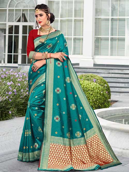 This beautiful premium pure silk Indian saree / sari comes with elegant work. Blouse comes in premium jacquard border.